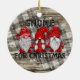 Gnome rustic land helgdag bondhus med tre vackra Gnomes i röda tröjor med Gnome För jul på en svart och vit plaid och rustik träbakgrund.