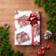 Gnome rustic land helgdag-bondgårdskonstruktion med tre vackra Gnomes i röda tröjor med Gnome för jul på svartvitt.