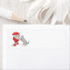 Vintage grafik som skildrar en rödkantad gnom på tassen av en katt. Roligtens image från Skandinavien under århundradet.