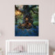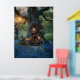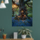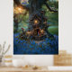 Gnome-hus i träd omgivet av blåklockor poster