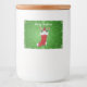 Anpassningsbarna för ett livsmedel i burk är grönt med snurrar som gränsar till finare i vitt snöflingor och en röd och vit julklapp med en gnom i toppen mellan två polkagrisar. Anpassa God jul-texten till mallen.