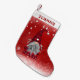 Cute Red gnome på röd och vit bakgrund med snö. Valfritt monogram