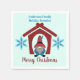 Denna pappra napkin är förskönad med helgdag av grafik som skildrar en gnom som står i dörren till en röd skandinavisk hytt tillsammans med stiliserat blått snöflingor och som är lätt att anpassa texten. Den här designen koordinerar med mina andra jultomtartiklar.