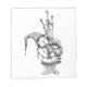 Vintage teckning av rundad gnom som spelar en uppsättning överdimensionerade säckrör.