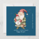 En gnom klädd i rött står bredvid en snögubbe i en grönt som håller på att strö och röda halsdukar. De är omgivna av en damm av vit snö som poppar på den mörk blått bakgrunden. Den minimalistiska estetiken skapas med ett enkelt God jul och Gott nytt år nedan. Affärsområdet namn går vinkelrätt mot högerna. Ett redigerbart julmeddelande är på baksidan och en ställe för ditt företag. Enkelt ställe din logotyp nedan. Ett litet Julgran dekorerar toppen.