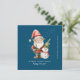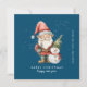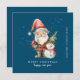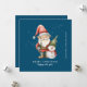 En gnom klädd i rött står bredvid en snögubbe i en grönt som håller på att strö och röda halsdukar. De är omgivna av en damm av vit snö som poppar på den mörk blått bakgrunden. Den minimalistiska estetiken skapas med ett enkelt God jul och Gott nytt år nedan. Affärsområdet namn går vinkelrätt mot högerna. Ett redigerbart julmeddelande är på baksidan och en ställe för ditt företag. Enkelt ställe din logotyp nedan. Ett litet Julgran dekorerar toppen.