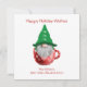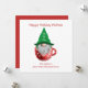 Gnome Red Grönt Helgdag Önskemål Personlig Card. Anpassa den här söta gnomen i kopp. Mallen har konfigurerats för att du ska kunna lägga till familj namn och anpassningsbar Julhälsningar.