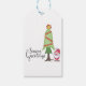 Santa gnome och Whimsique träd med modernt skript "Säsonhälsningar"