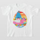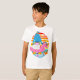 Pojkens T-shirt med en söt gnom på sommarsemestern. Den berömvärda gnomen bär solglasögon och blommigt skor. Han leker med sin uppblåsbara enhörning ring. Och även i designen är en krabba, en stjärna och fiskmåsar.