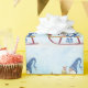 En skäggig gnom sitta på ett dekorerat sleigh med julklappar belyser denna helgdag papper.