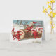 Funny vintage Christmas illustration of little white bearded gnomes dressed like Santa, dragging a cut tree trunk through the snow. Published by L. Prang & Co.