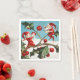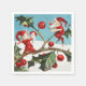 Funny vintage Christmas illustration of little white bearded gnomes dressed like Santa, painting holly berries in the snow. Published by L. Prang & Co.
