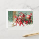 Funny vintage illustration of little white bearded gnomes dressed like Santa, sweeping snow with brooms. Published by L. Prang & Co.