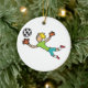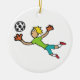 En fotbollsmålare går från marken vid fullt för att hindra att attacksidan når ett mål. Måltidsgrafik för fläkt och måltider för fotboll.