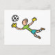 En fotbollsmålare går från marken vid fullt för att hindra att attacksidan når ett mål. Måltidsgrafik för fotboll i fläkt.
