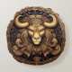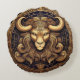 Esotherical mystical image of a goat in bronze colour.