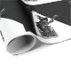 En svart och vit illustration av en get sitta på scenen, i ett scenljus, med en elektrisk gitarr. Geten är sitta på en stämpel, med det är hov. Om du vill ha hjälp med att anpassa designen eller hitta den på den produkt du behöver kan du kontakta mig. Det finns en fråga till den här designerknappen precis under den här texten.