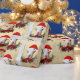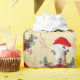 Cute LaMancha-killingen med julhatt och antlers med strimlade julprydnader omgivna av en helgdag av röda poinsettias, gräs-koner, grön och stor röd båge. A © goatLady GetYerGoat™ original - Bästa för medelstora till större paket, designen är cirka 6 tum för varje get -