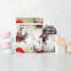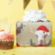 Cute LaMancha-killingen med julhatt och antlers med strimlade julprydnader omgivna av en helgdag av röda poinsettias, gräs-koner, grön och stor röd båge. A © goatLady GetYerGoat™ original - Bästa för medelstora till större paket, designen är cirka 6 tum för varje get -