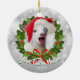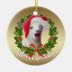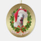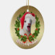 Den berömvärda nigerianska Anpassningsbarna Dwarf Goat Doe Kid som målar upp en goatdam av GetYerGoat™ All som är död i sitt Santa Hat, omgiven av en grönt julkrans av Holly på guld-bakgrunden på ena sidan och Silver Bokeh-bakgrunden på den andra sidan - Anpassa Hälsning som säger God jul på ena sidan, anpassa besättningen namn, gården namn eller geten namn (ELLER ANY WORDING) och året på motsatt sida - God julprydnad för din Helgdag ge, Julgran eller fönsterdekorationer - dubbla sidformade formgivningar och kan vara personlig. Perfekt för prydnadsbyten vid jul-Party, uppfödarpresenter, veterinärpresenter, Visa gåvor.