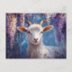 En charmerande målning med en get porträtt inramad nedanför kaskadande lila wisteria-blommor, som blandar den sterila personligheten med blommigtens elegans.
