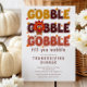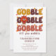 Den här moderna Thanksgivingens inbjudan innehåller orden "Gobble Gobble Gobble Till You Wobble" med den finaste kalkonen, med en vit bakgrund. Det är perfekten till inbjudan dina vänner till en roligt och avslappnad Thanksgiving firande.