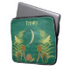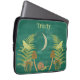 Mina illustrationer visar en naturvärld med vissa undertoner i mörken. Ett halvmåns måne hänger i himlar ovanför en scen av gröntens ängar, gultens månar, bruna svampar och en grönt och brunt snigel, allt mot en målad mörk teal färgad. Laptop sleeve är redot att vara personlig med en namn eller annan text med gult.