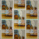 Vintage Halloween-hälsningskortillustration som visar ett barn som tittar i jacken o'lantern i fönstret.
