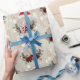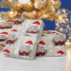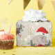 Adsible Angora-killgeten i en julhatt, med sina dekorerade renar med festliga julbalkar hängande från dem, och en krans av poinsettias - A © goatLady GetYerGoat™ original - mot en söt guld bokeh bakgrund - Bästa för större paket, designen är cirka 6 tum för varje get -