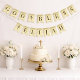 A bunting flags banner fit for religious celebrations (e.g. baptisms or religious confirmations). Brown caps on a background simulating parchment (old paper) with 2 crosses between the words. The message is "God Bless" followed by a 6 letters name (the default is Elijah).