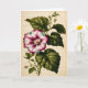 En botanisk illustration som tittar vintagen av en morgonblomma på åldrasen, med avfasad, handskriven text i bakgrunden, gör ett vackert födelsedagskort.