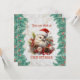 Det bästa sättet att skicka julhälsningar till vänner och familj. En söt chick klädd i en röd julhatt sitta bland björnbär, gräs och Julgran bollar.