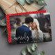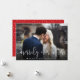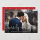 ett favoritfoto från bröllop i julas med vårt söta kort för helgdag som "nästan alltid efter" med ett skarpt, vitt, modernt kalligrafiskt skript. Anpassa med namn och året. Kortet återgår till ett rött och vitt vintersnöfall mönster.