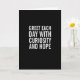 "God dag med nyfikenhet och hopp och kaffe. Massa kaffe". Lustigt kort för att skicka lite inspiration och ett pussel samtidigt! Modern svartvit formatering med fet typografi.