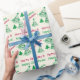 "God födelsedag och Lycklig jul" i rött och grönt med några foton på "Grattis på födelsedagen" party i grönt och några Julgran-symboler. Perfekt för att slå in en present till någon som fyller år i jul! [version 2]