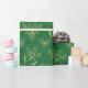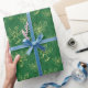 Grönt Julinslagning pappra egenskaper klockor och prydnadsföremål mönster med grybär grenar och mistletobär bakgrunden. Det här festliga utseendet grönt julklapp är perfekt för helgdagar på vintern presenter för familjen, vänner, kolleger, kunder.