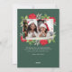 Den här moderna blommigtens typografi - julkort - har en kollage av 3 foton på framsidan och 1 vågrät på baksidan. Elegantens typografi omfattar en vinterdesign med blommigt och en grön vattenfärgsdesign med enkel och modern "Merry"-textövertäckning. Omfattar löv och bär från holly, blommor från poinsettia och bladblomma grenar. Anpassa anpassningsbarna med familjens efternamn, årtal och ett meddelande om helgdag av anpassningsbar på baksidan av kortet. grönt för jägare av mörk med rött, grönt och vitt färg.