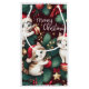 Den här julklappen är perfekt för kattälskare. Den har tre fina kattungar som bär tomthattar och leker med prydnadsföremål. Bakgrunden är festlig grönt med röda bär och guld accenter. Den här väskan ger dig en gnutta glädje och lycka till med din gåva.