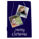 Festive God jul illustration med 2 personliger foto och stjärnblå bakgrund