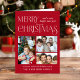 Elegantens röda, hopfogade helgdag-gratulationskort med "God jul" i snyggtens vintage, vit typografi, "gott nytt år" och en hälsning i modern vit typografi, tre av dina favoritfoton från familjen och ditt namn. Anpassa ditt säsong-meddelande på insidan.