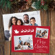 Festivt rött helgdag med 2 utspridda foton i vitt ramar, en vit silhuett av renar som flyger tomtens sleigh, "God jul" i ett snyggt vitt skript och ditt namn i vanlig modern vit typografi. Lägg till ytterligare ett foto på baksidan.