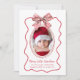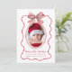 På trendbilden av foto vid födseln med julhelgen som visar er nyfödds bild visades i ett handmålat rödprickat ovalt ram, vågigt en vit röd färg ram gräns med en fluga, "God Jul" i ett lekfullt rött skript, och deras namn- och födelsestatus i en enkel modern skrift. På baksidan lägger du till ytterligare 3 foton och en personlig säsong hälsning.