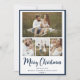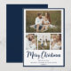 Det här vackra fotokollage-julkortet med 4 foton, God jul i ett modernt penselskript, en anpassade, namn och året skulle vara perfekt att skicka till dina vänner och familj. Alla kommer att få nya bilder av din vackra familj från kärlek. Typsnitt är modernt och rent i marinblått.