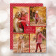Ditt efternamn och hälsning och God jul och Gott nytt år i chic med röd text med 4 favoritfotokollage på framsidan och ditt första namn på baksidan av detta Julhälsningar kort. MER FÄRG i vår affär. Live Design Service kan hjälpa dig med layouten för din design om det behövs.