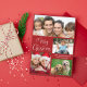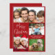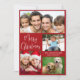 Enkelt rött helgdag för fotokollage. "God jul" är skrivet i ett snyggt vitt skript och du kan anpassa dig med 4 foton och din familj namn och året i modern vit typografi.