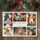 Ett enkelt, modernt fotokollage-kort med "God jul" i ett elegant-skript, 6 bilder av dina favoriter och favoritstunder från förra året och din familj namn och året.