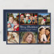 Ett enkelt och modernt mörk blått helgdag-kort med "God jul" utställt i ett elegant, vitt skript, en 6-fotokollage av dina favoritfolk och favoritstunder från förra året och din familj namn och året.