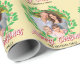 Den här julklappen som omsluter pappra innehåller en andedräkt av grönt löv och röda bär som gräns till anpassadet fotot ram. Anpassadet lyder: God jul från (din familj namn). Bakgrunden är en strålande gult med subtila spektrum.