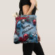 Mellanstor julklapp med Anpassningsbar Anpassa text. Färgfulla dekorationer på blå bakgrund. Anpassa väskan med din egen text på båda sidor av väskan. God jul & A Gott nytt år från InfinityDigitalArt