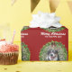 Vackra anpassningsbar som gör att julen är papper med en grönt helgdag krans mot en röd bakgrund. Byt ut med hund foto mitt i andedräkten eller lägg till en personlig katt bild för dina vänner och din familj. God jul är skrivet i vitt. Anpassa med din egen text under.